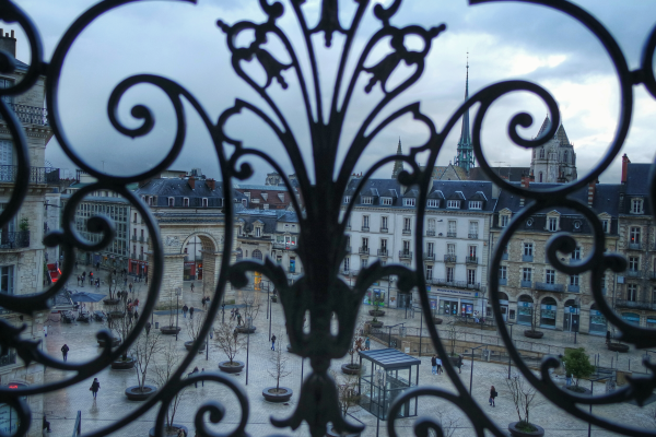 balcon Grand Hôtel La Cloche angle rue Devosge, avenue de la premiere armée, vue place Darcy-01