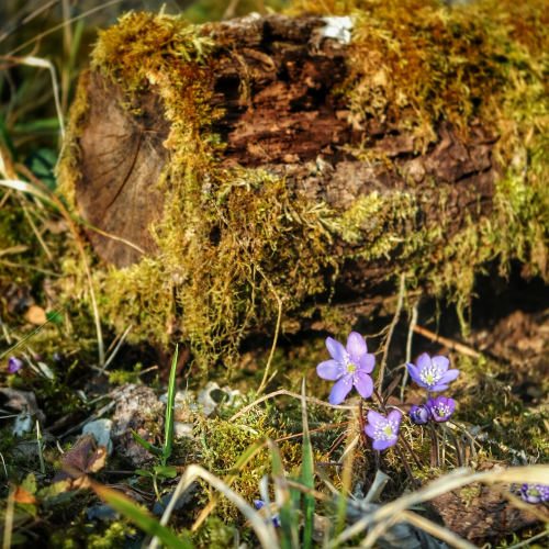 anémones hépatiques et bûche sentier Bouton d’Or Val-Suzon