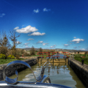 Mini Gaston passe une écluse du Canal de Bourgogne