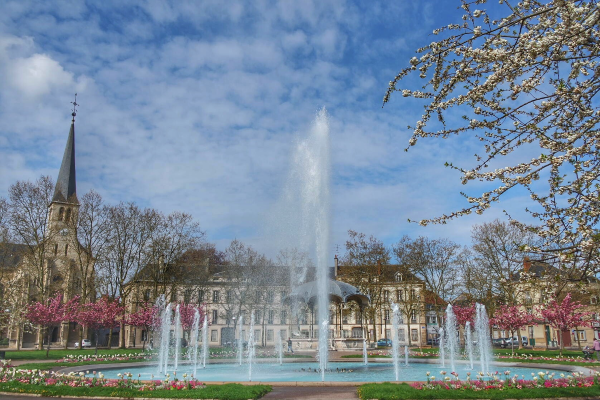 jets droits kiosque et église place Wilson Dijon