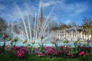 jets place Wilson, kiosque et église Dijon