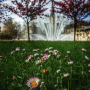 pâquerettes et fontaine Place Wilson Dijon