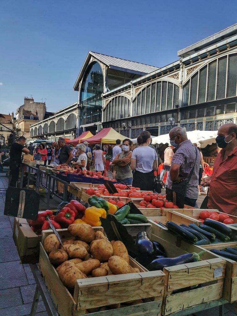 Dans la famille des classiques dijonnais, je demande, Les Halles! Plus qu’un classique, un incontournable, qui rythme la vie du centre-ville avec les jours de marché et leur ambiance typique: d’un côté, on scande des prix imbattables, de l’autre, on vante la qualité des produits, une odeur de poulet rôti, puis d’épices, puis de fleurs…On s’installe à une terrasse pour trinquer que ce soit avec un café, une bière ou un verre de blanc! Bienvenus sur le marché!