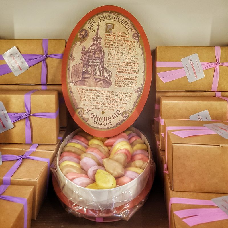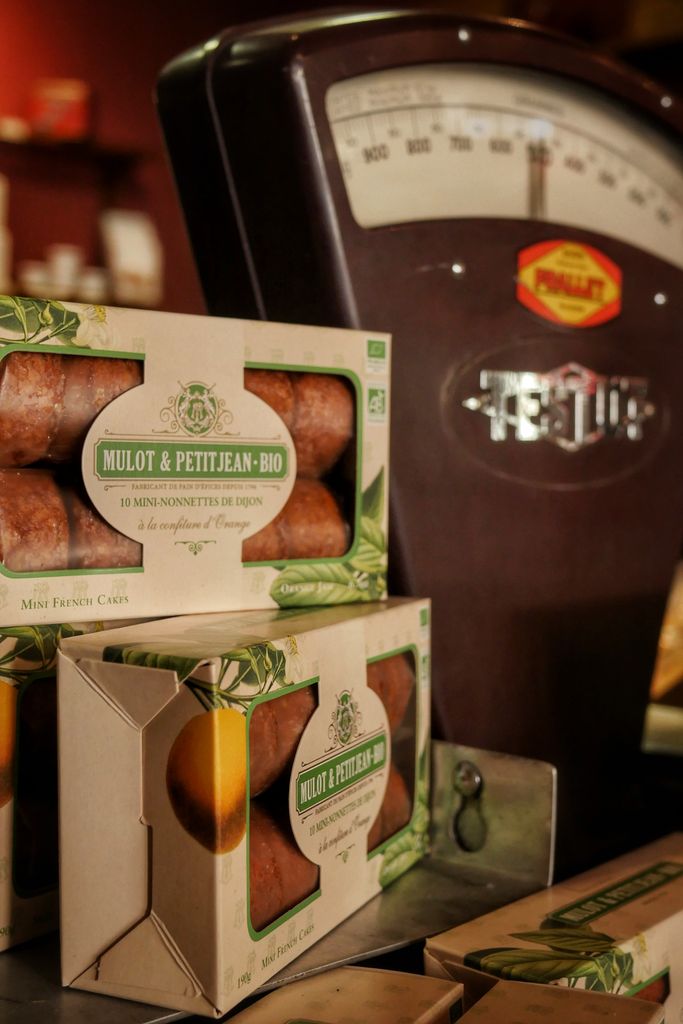 Il serait arrivé à Dijon grâce aux Ducs de Bourgogne. L’histoire édulcorée raconte que Marguerite de Flandres, épouse de Philippe le Hardi adorait ça. Elle aurait accepté le mariage sous réserve de pouvoir en manger jusqu’à plus faim…Le Duc a fait le nécessaire et jusqu’à 12 fabriques de pain d’épices ont existé dans la ville. La version plus terre à terre, raconte simplement que le pain d’épices aurait été rapporté de Flandre par le duc Philippe le Bon. Quoiqu’il en soit, il ne reste plus qu’une fabrique aujourd’hui qui perpétue un savoir-faire familial et traditionnel depuis plus de 200 ans, la fabrique Mulot&Petitjean, on en pousse les portes?