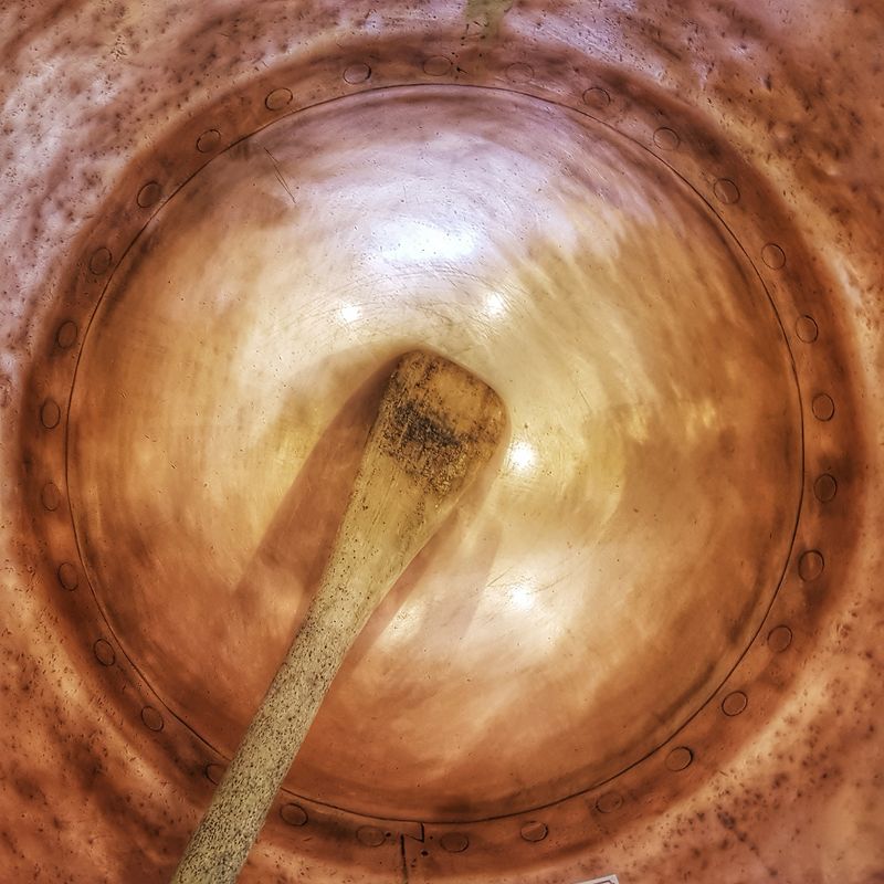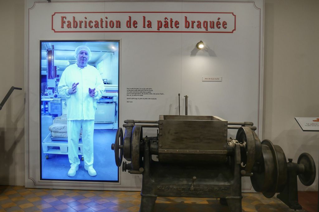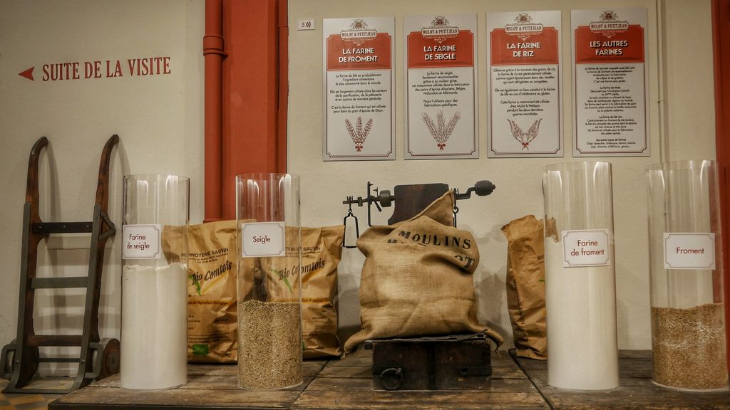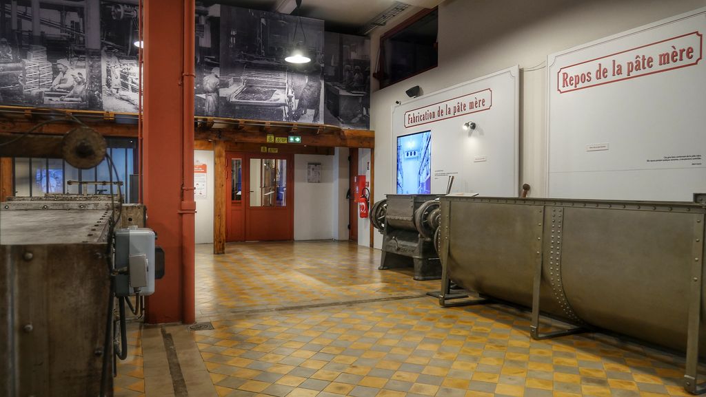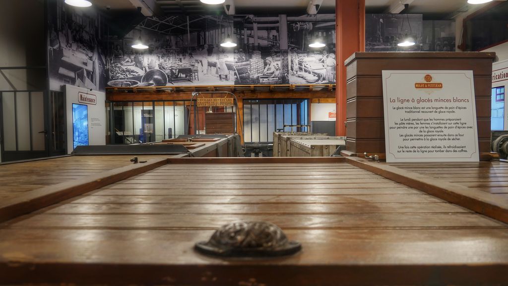 Le pain d’épices de Dijon se caractérise par sa pâte mère composée de farine de froment, de miel et de sucre qui repose deux semaines avant qu’on y ajoute les jaunes d’œufs, le levain et les arômes (anis) en veillant au faible taux de matières grasses. La pâte braquée obtenue repose deux ou trois jours puis est découpée et mise au four, les mêmes fours qu’à la construction de l’usine en 1912! C’est dans un troisième espace que l’on découvre ces étapes de fabrication à travers l’exposition de la collection de machines et les témoignages, sur écrans géants, des salariés de l’usine.