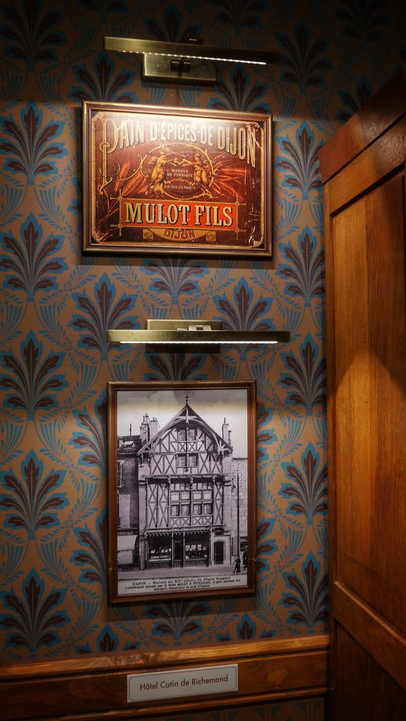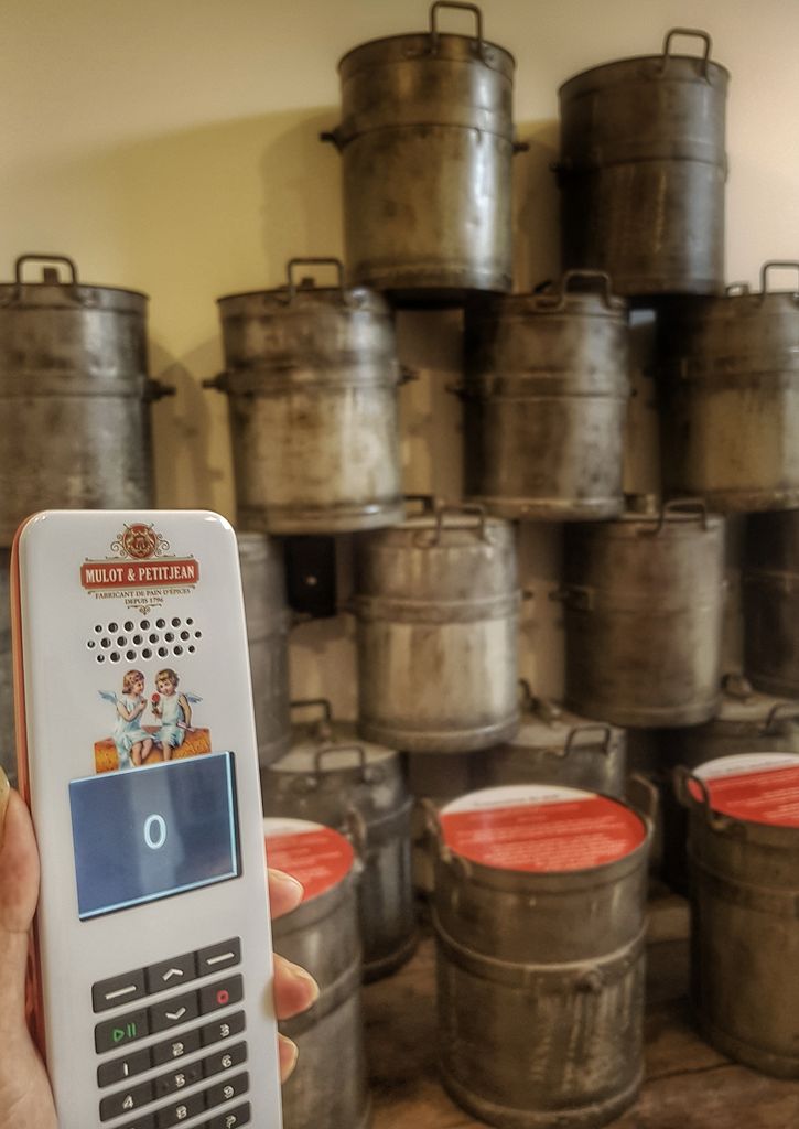Avec un audioguide ou accompagné d’un guide, la visite débute dans un bureau, ambiance art déco, des moules et tampons Mulot&Petitjean sont exposés dans des vitrines en verre : commence alors l’histoire du pain d’épices à Dijon et de la Maison Mulot & Petitjean. Originaux, les portraits accrochés aux murs, s’animent et nous délivrent un morceau de l’histoire familiale.