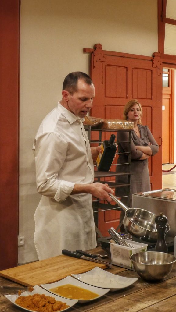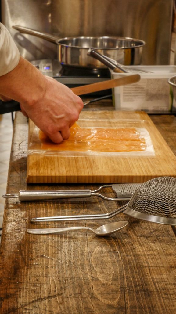C’est au mois de décembre, dans le cadre des préparatifs des fêtes de fin d’année, que j’ai fait une visite singulière intitulée « Apéritif de fêtes »: la découverte de la fabrique s’achevait sur un atelier culinaire spéciale fêtes , en compagnie d’un chef , Damien Curie.